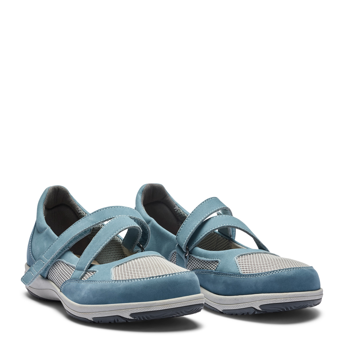 Ballerina with a supportive Velcro strap made from a combination of mesh and nubuck. The sporty Outer sole is made of TR with good grip and a light rocker function. Inside the ballerina a removable 6 mm shock-absorbing Protektor® insole, provides you optimal cushioning.