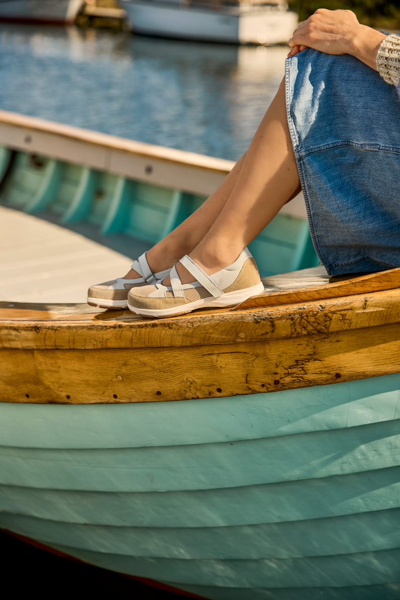 Ballerina with a supportive Velcro strap made from a combination of mesh and nubuck. The sporty Outer sole is made of TR with good grip and a light rocker function. Inside the ballerina a removable 6 mm shock-absorbing Protektor® insole, provides you optimal cushioning.