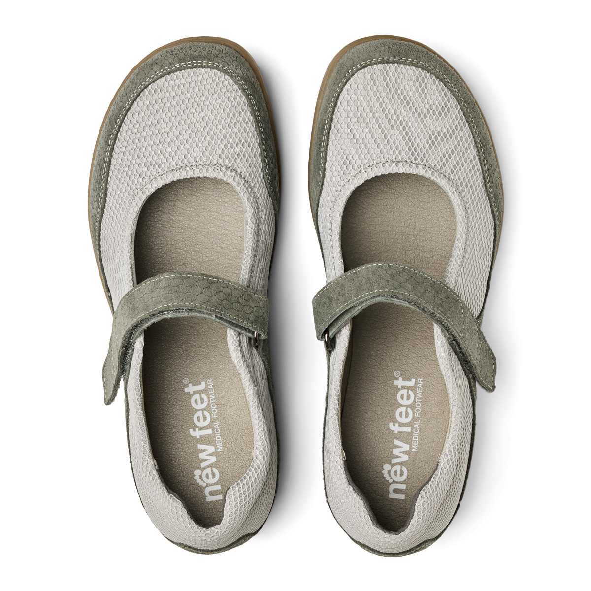 Classic ballerina with velcro strap. Mesh. Outer sole in rubber with good grip and light rocker function. Removable 6 mm shock absorbing Protektor® insole.