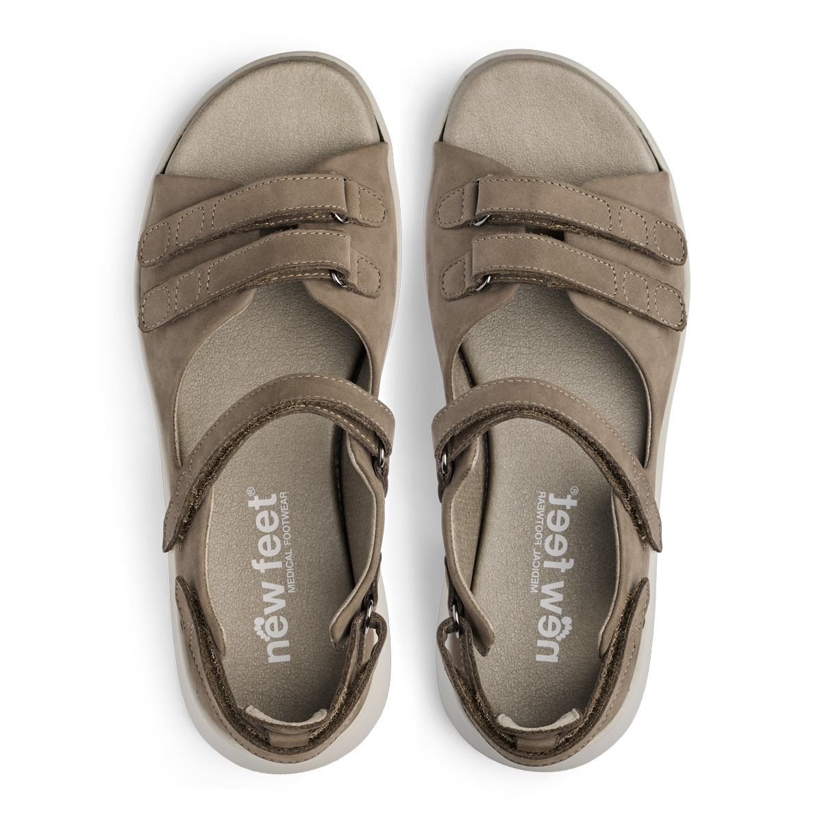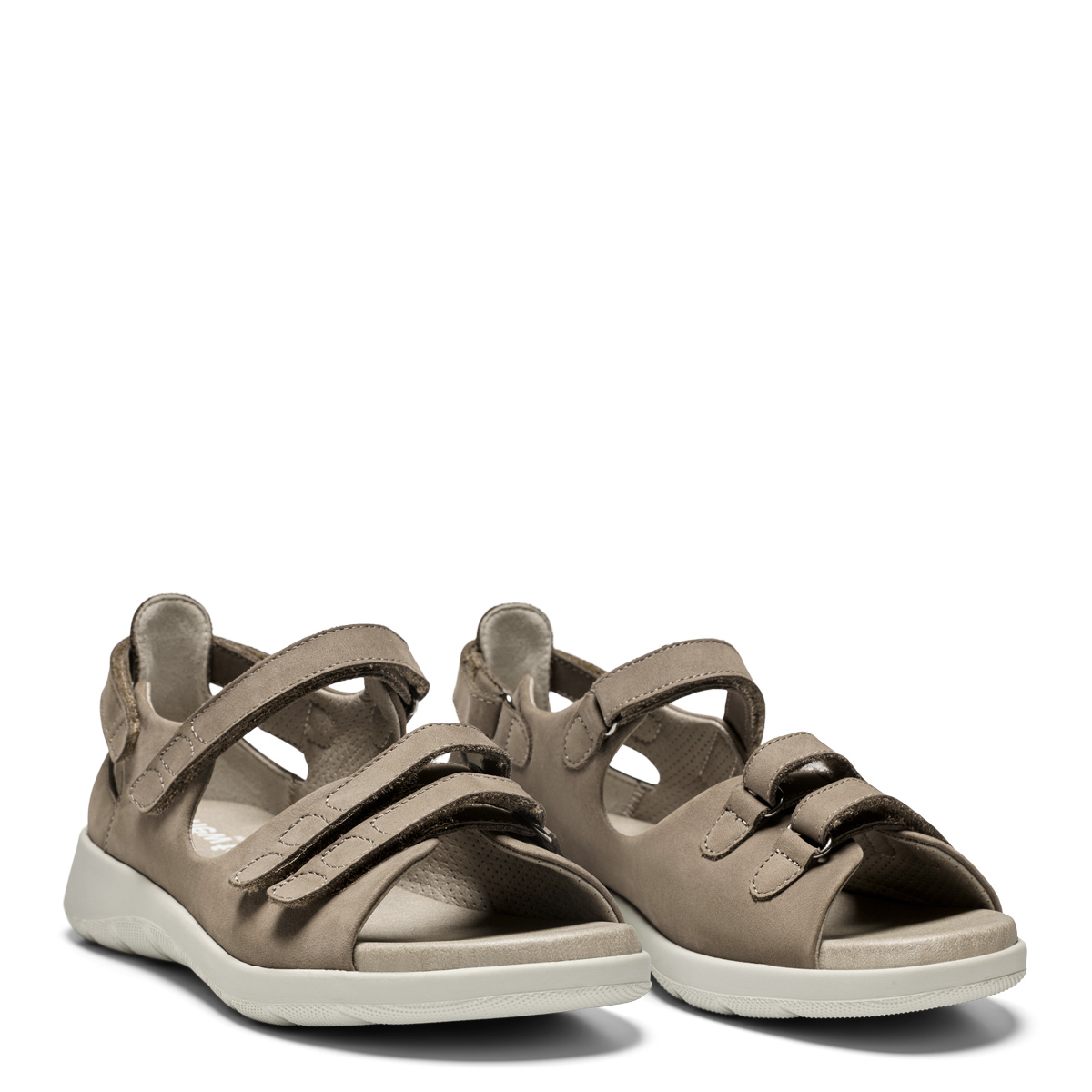 Sandal with three velcro straps and adjustable heel counter. EVA outer sole with light rocker function. Nubuck. Removable 6 mm shock absorbing Protektor® insole.