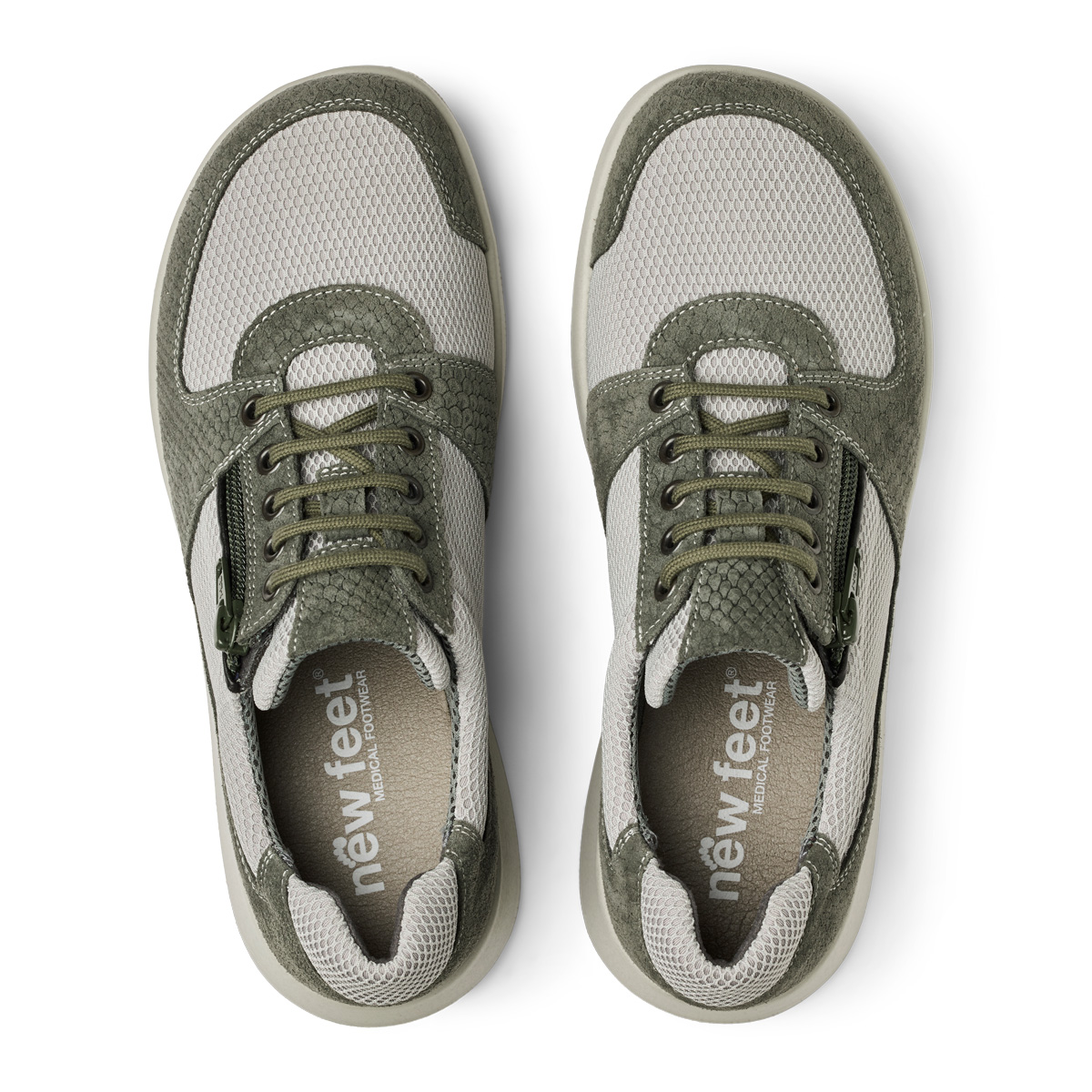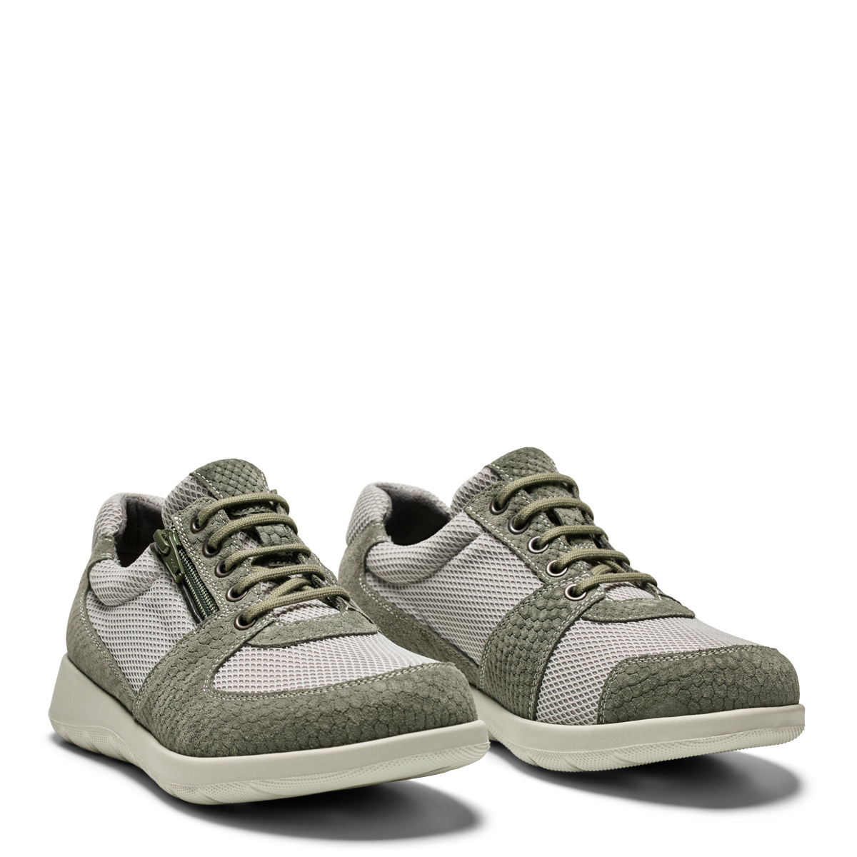 Women´s shoe with lace and zipper. EVA outer sole with light rocker function. Mesh. Removable 6 mm shock absorbing Protektor® insole.