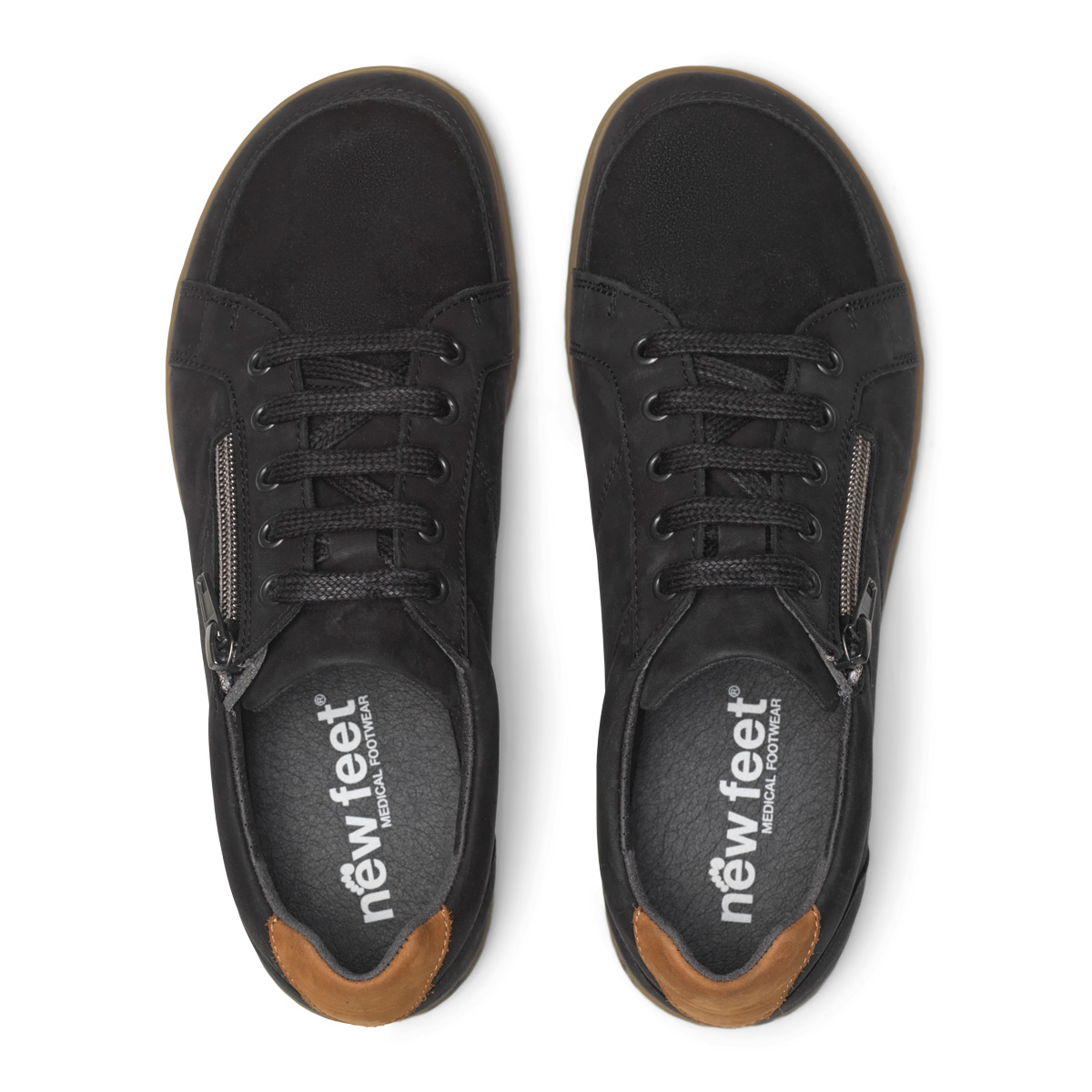 Shoe with lace and zipper. Nubuck with OrthoStretch®. Rubber sole. Removable 6 mm shock absorbing Protektor® insole.