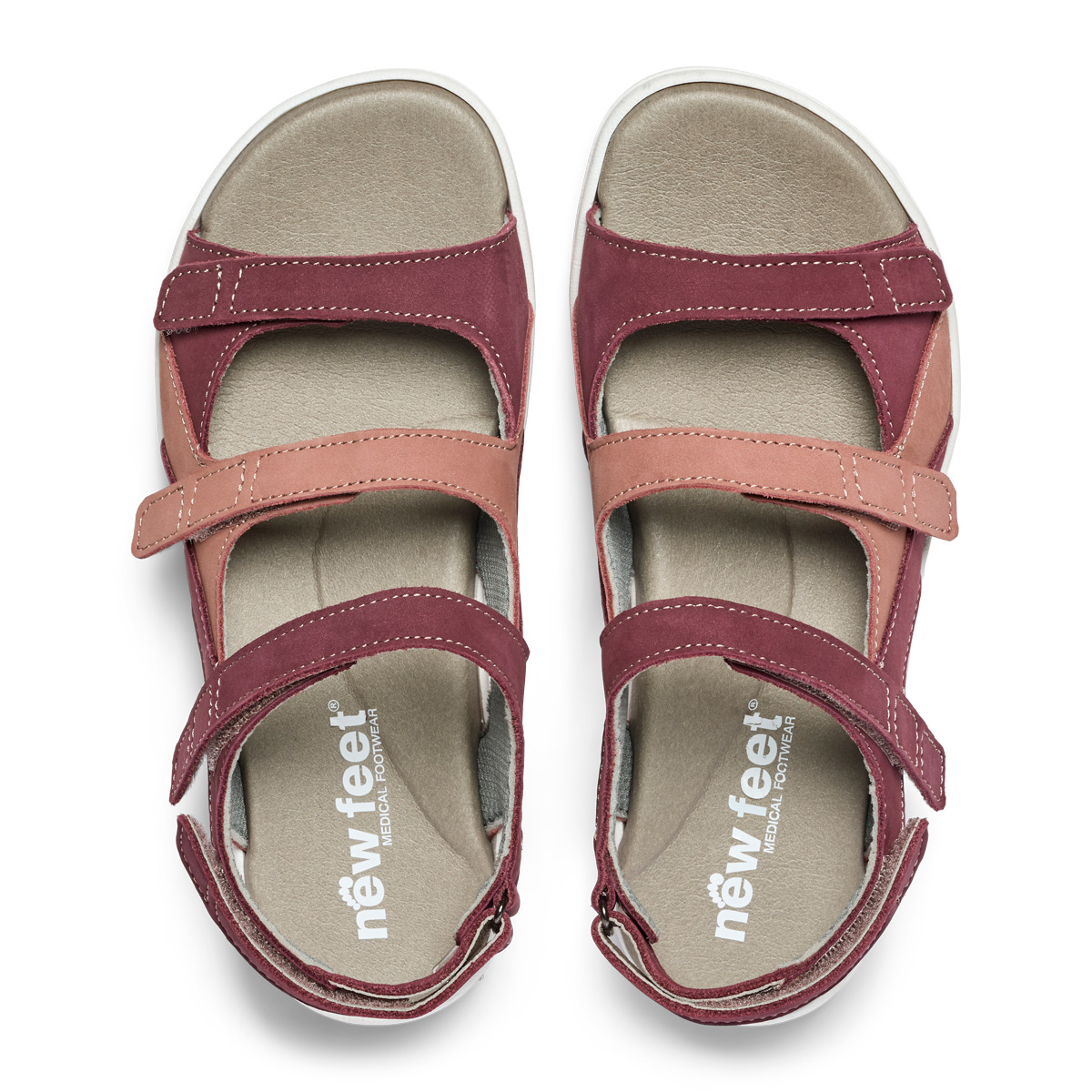 Women's sandal with an adjustable heel strap and three Velcro straps across the foot
