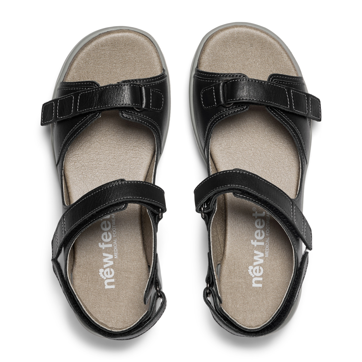 Sandal with two Velcro straps and an adjustable heel strap made of plain leather. The outer sole is made from durable EVA and features a light rocking function. Inside the sandal, we placed a removable 6 mm shock-absorbing Protektor® insole, which protects your feet from impact on hard surfaces.