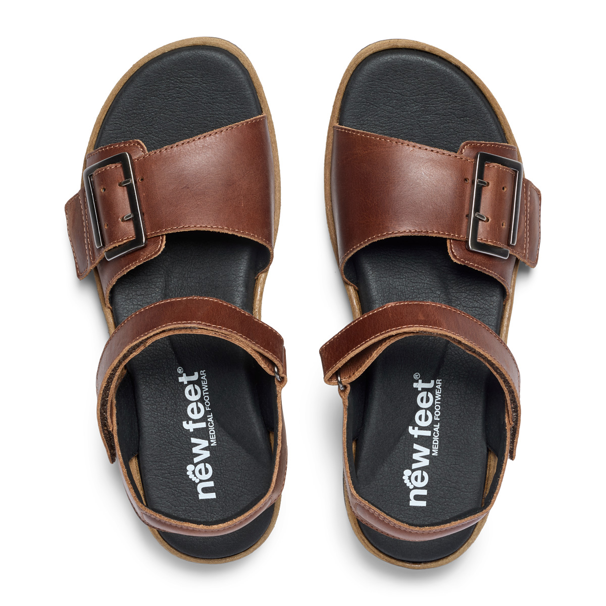 A simple and stylish sandal featuring a velcro strap and an adjustable buckle, crafted from plain leather.. The outer sole is made of EVA with medium rocker function. Inside the sandal, we have added a removable 6 mm Protektor® insole with arch support, providing you with great support and comfort.