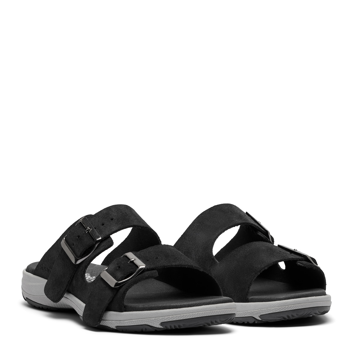 Slipper with two adjustable buckles featuring a sporty outer sole made of TR with good grip and a light rocker function. The slip-in sandal is crafted from suede. Inside the shoe, we have placed a removable 6 mm shock-absorbing Protektor® insole, which protects against impacts from hard surfaces.