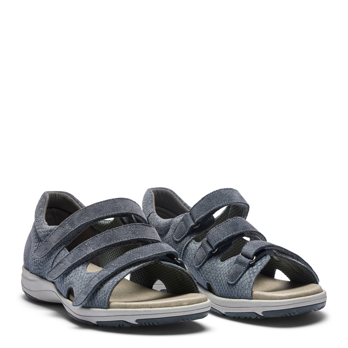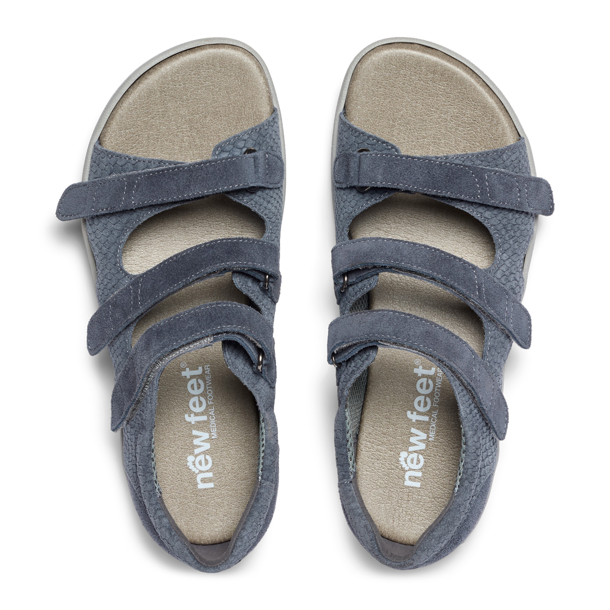 Closed heel sandal with three Velcro straps for effective adjustment, crafted from suede with structure. The sporty outer sole is made of TR material, providing good grip and light rocker function. Inside the sandal, we have placed a removable 6 mm shock-absorbing Protektor®- insole which provide you with great comfort