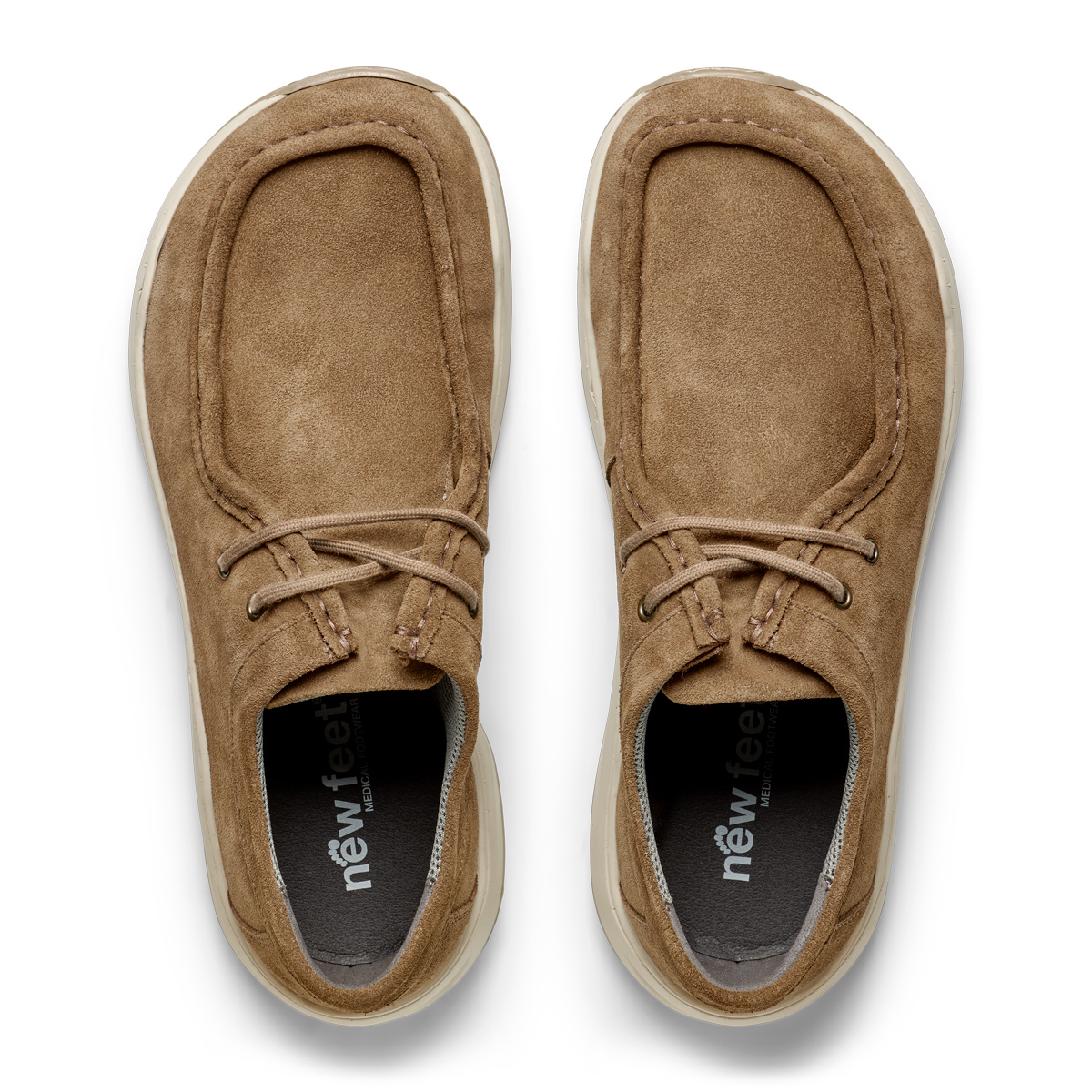 Men´s shoe with lace made of suede. The shoe is designed with a great width across the forefoot, and a comfortable, breathable textile lining. The outer sole is made from TR material, providing a stable and secure grip. Inside the shoe is a removable 6 mm shock-absorbing Protektor® insole for optimal comfort and support.