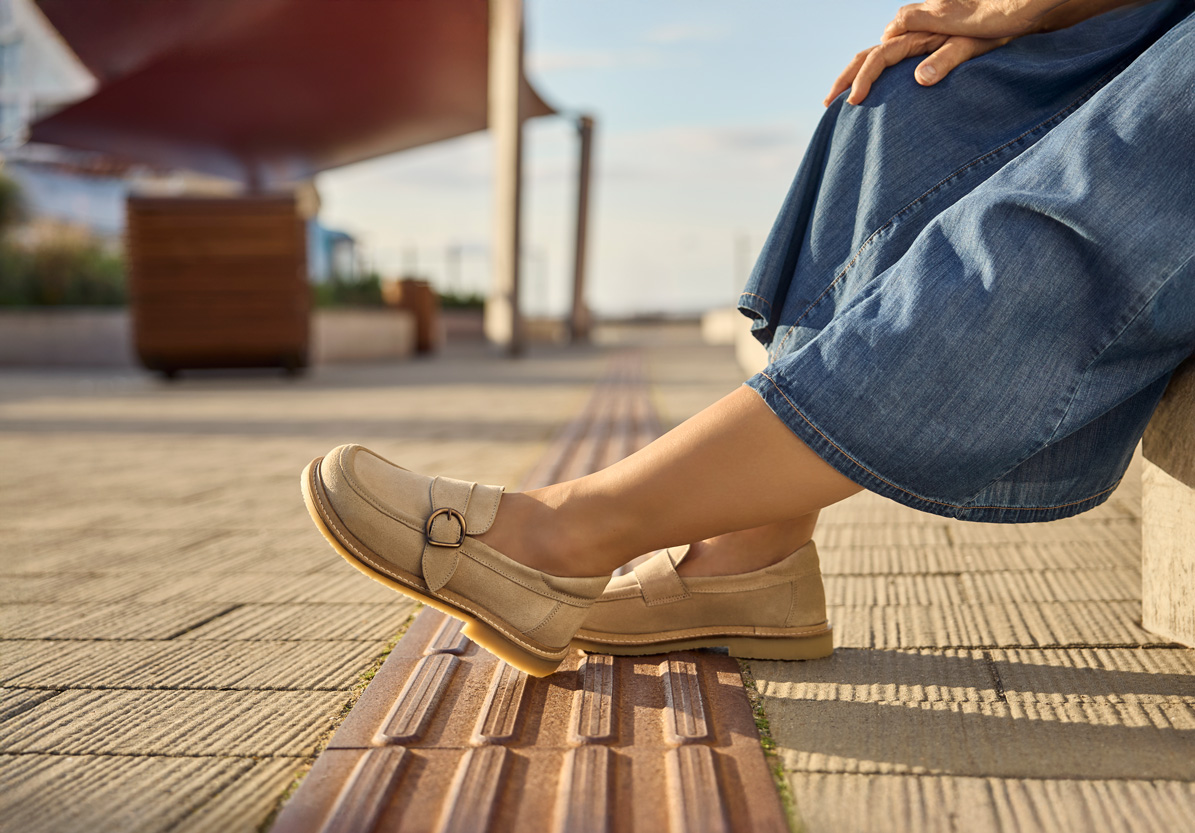Loafer with an adjustable Velcro strap and a decorative buckle. The outer sole is made of TR, providing excellent grip and a light rocker function for comfortable walking. Inside the shoe, we have placed a removable 6 mm shock-absorbing Protektor® insole, offering great protection.